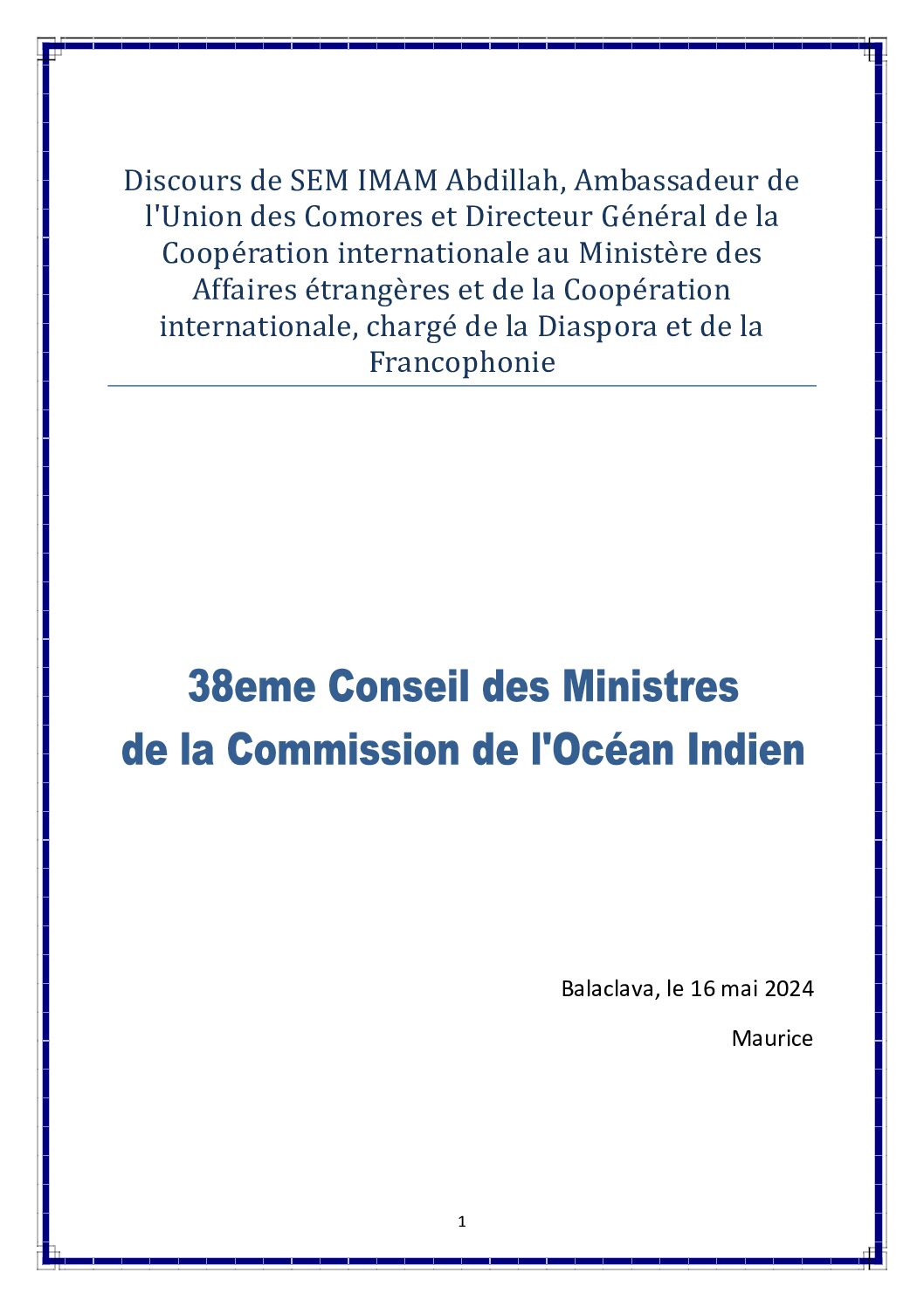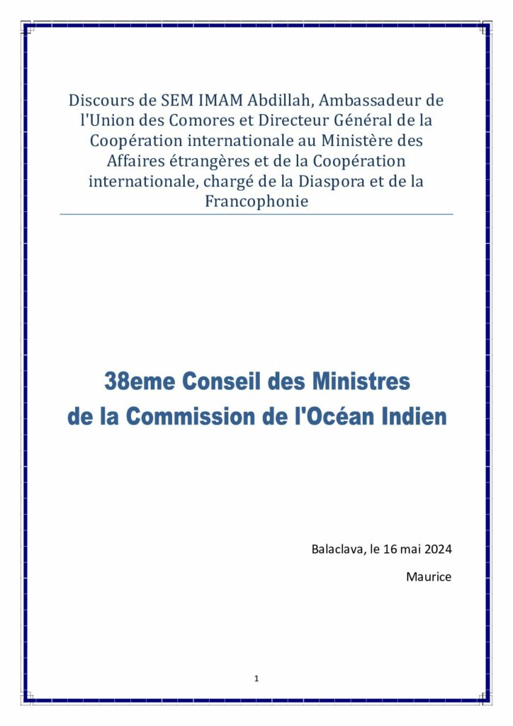 05162024_Allocution_Discours-de-SEM-IMAM-Abdillah_representant-du-ministre-des-Affaires-etrangeres_UnionDesComores_38eme-Conseil-des-ministres-de-la-COI.pdf